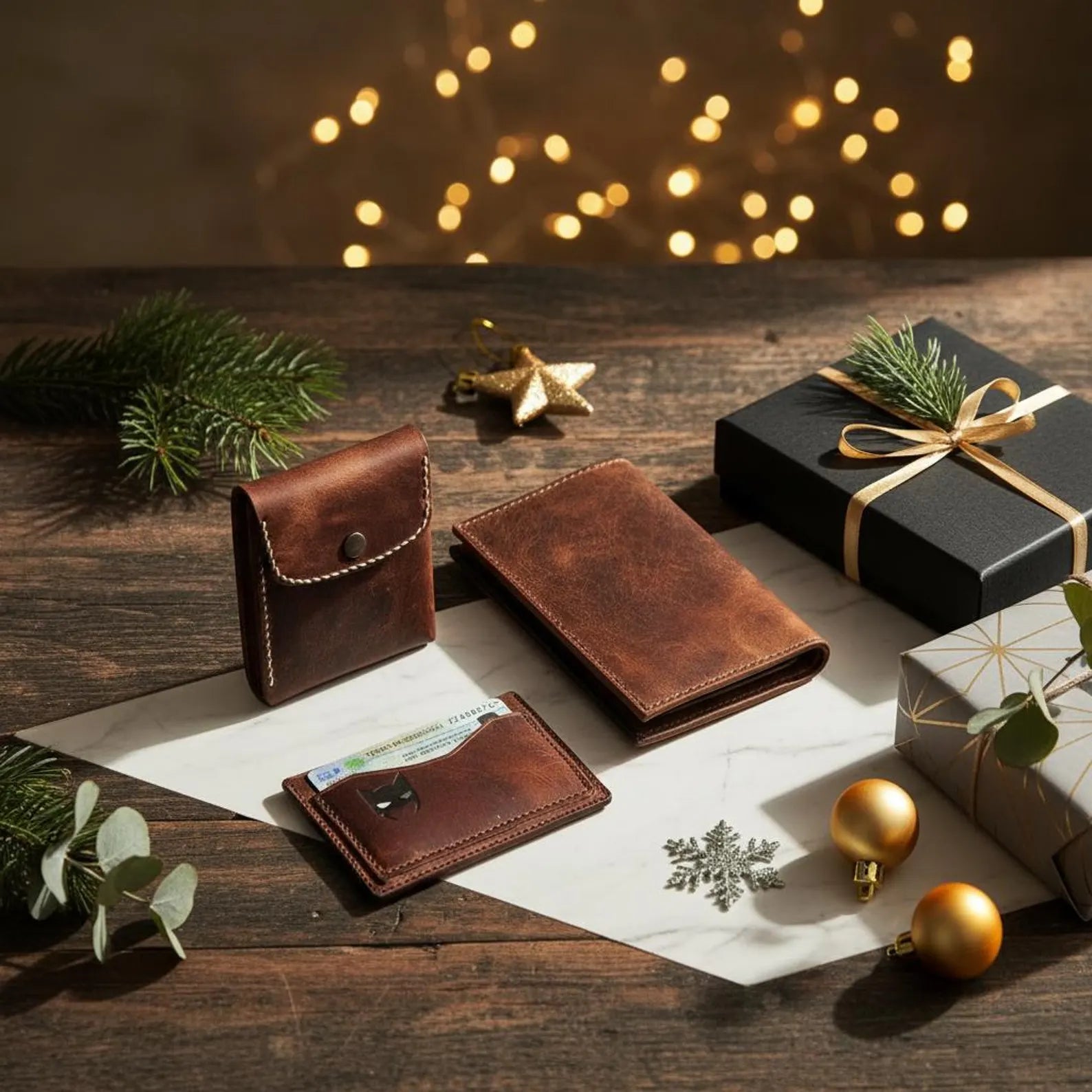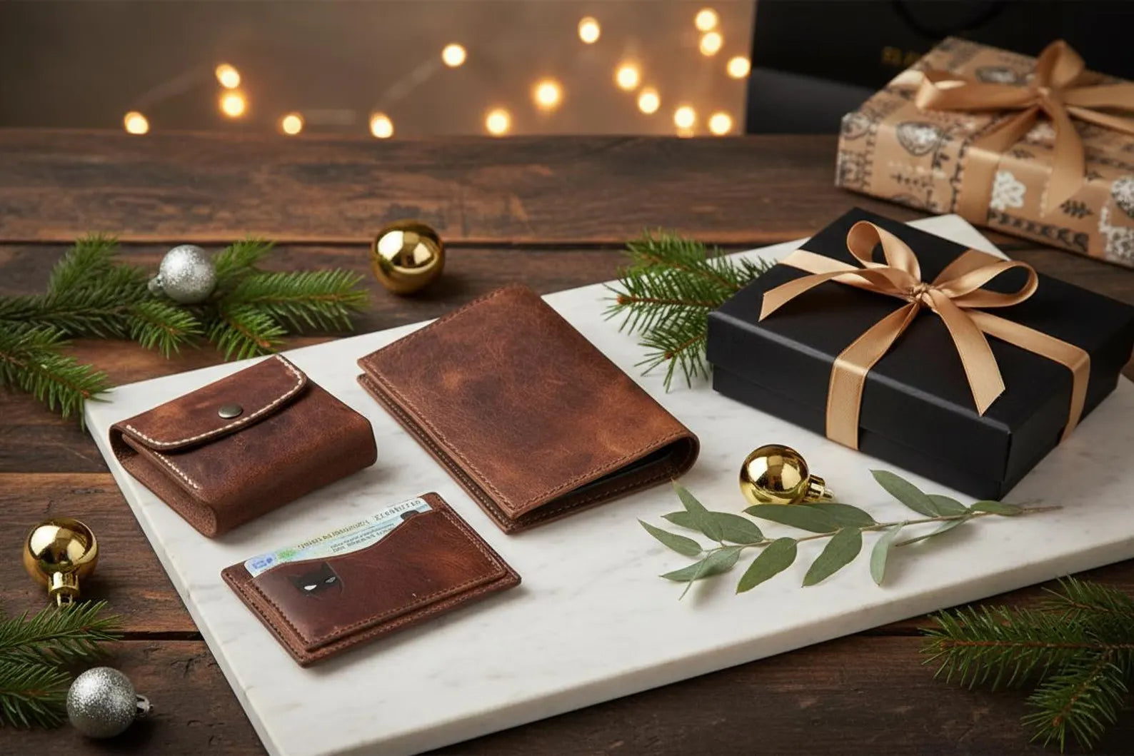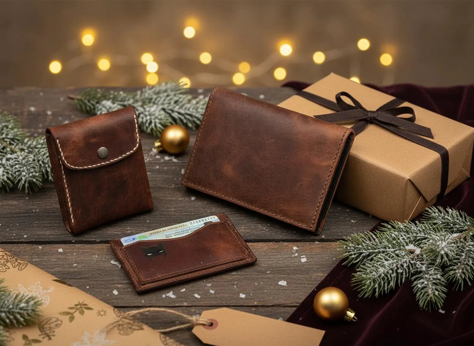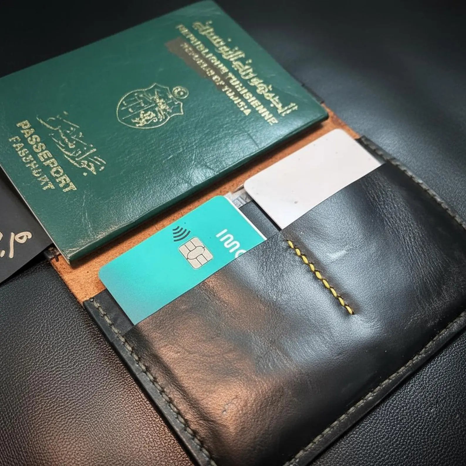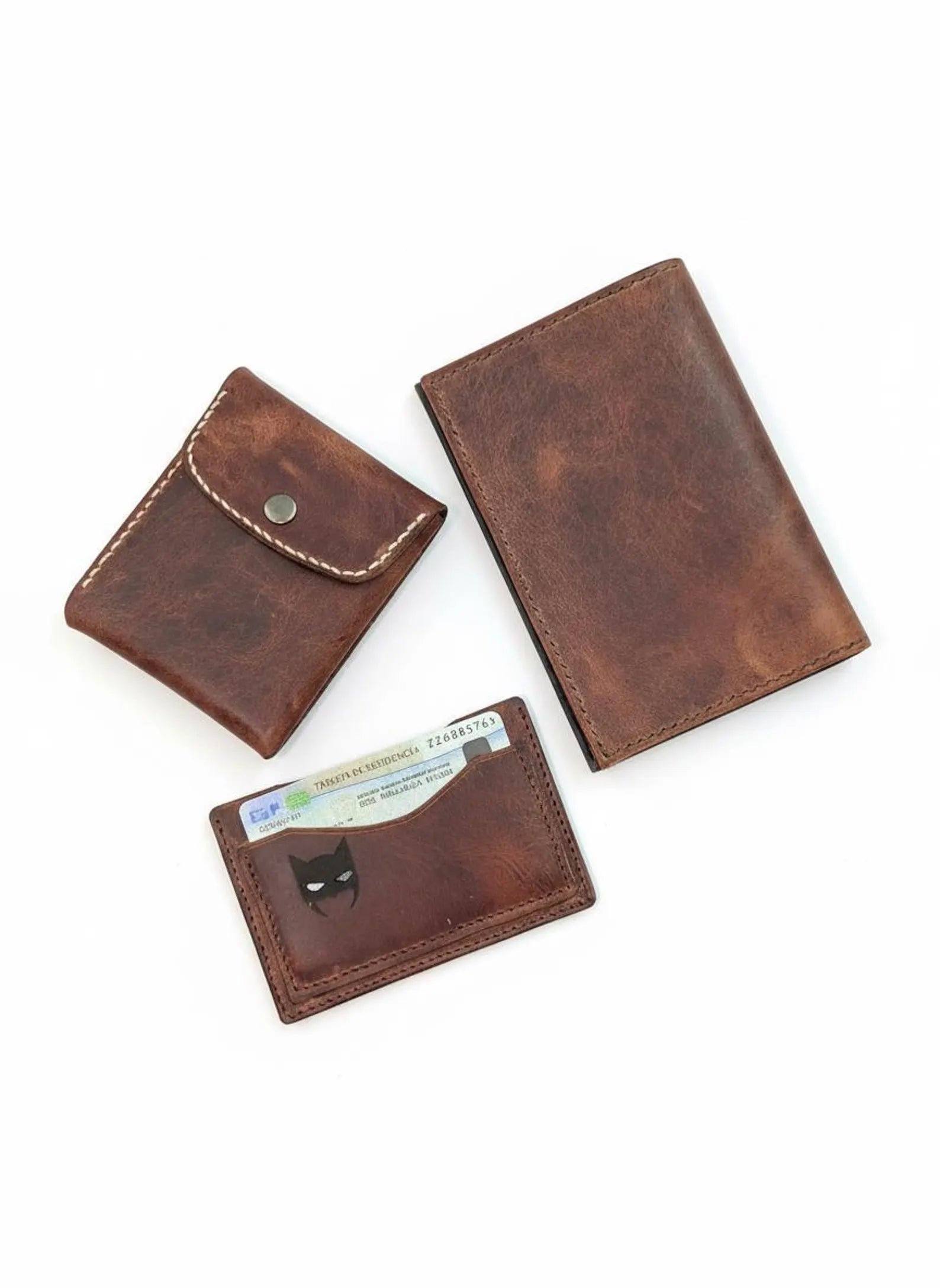 Porta pasaporte y billetera/tarjetero, piel marrón