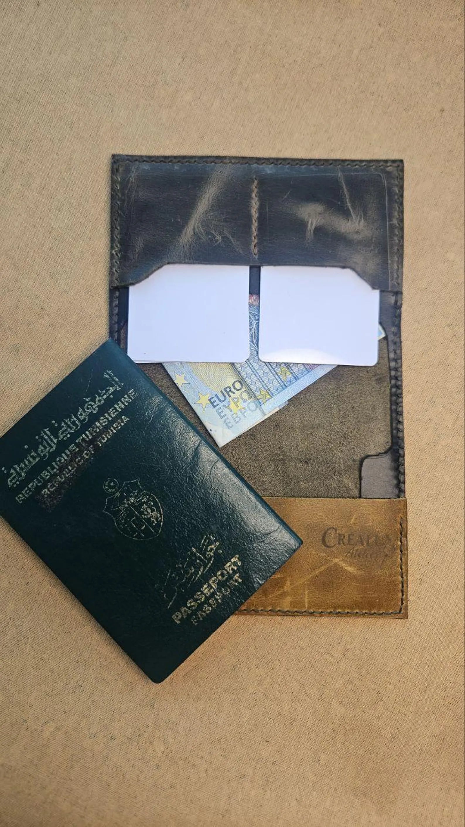 Portapasaporte de cuero Crazy Horse - 8 tarjetas y efectivo
